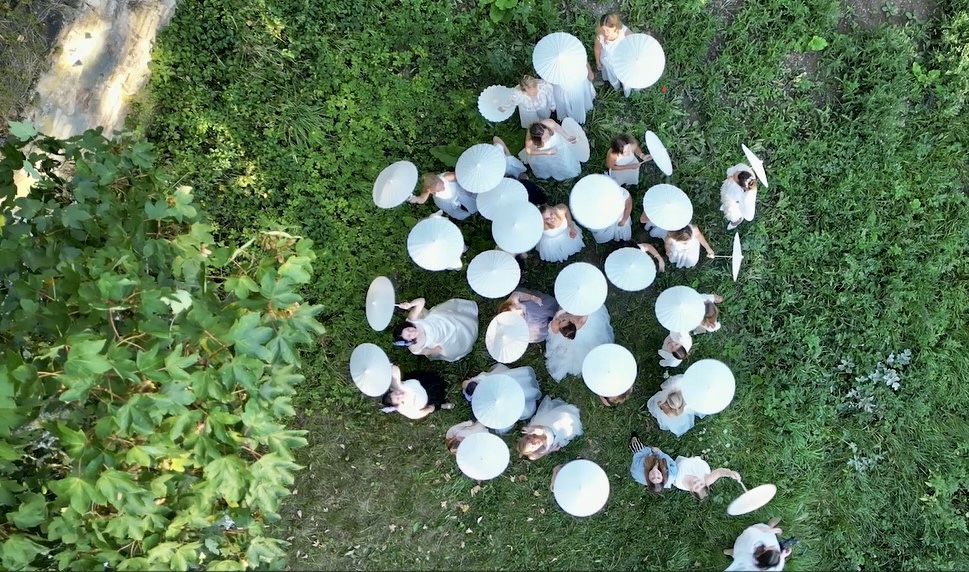 Nein, das sind keine Blumen! Das sind die Freundinnen der Gastgeberin, die alle in ihren ehemaligen Brautkleidern erschienen sind. Eine wunderbare Idee. Der 10. Hochzeitstag sollte wieder - wie der erste - als rauschendes Fest gefeiert werden. Und die schönen Hochzeitskleider sollten noch einmal zur Geltung kommen dürfen!